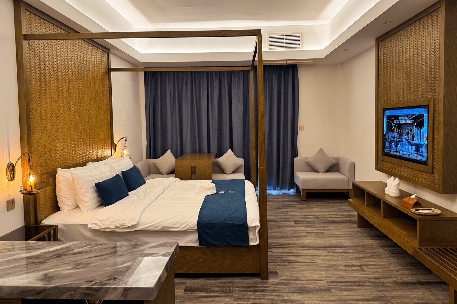 俯瞰城市天際線,擁有寬敞舒適的空間與現代設計。 雙人大床、落地窗景,為您打造專屬的靜謐時光與絕佳視野。